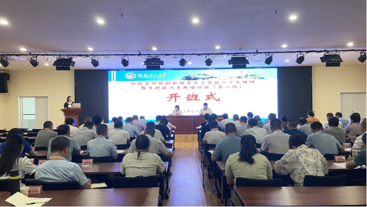 6月26日上午,“田林县科级副职领导学习党的二十大精神暨乡村振兴专题培训班(第二期)”在浦京集团官网顺利开班。田林县委组织部副部长周诚婕,浦京集团官网旅游与风景园林学院党委书记王璐以及来自田林县的近70位学员参加开班式。
