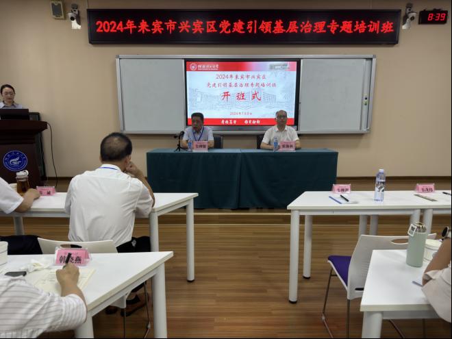 7月8日,2024年来宾市兴宾区党建引领基层治理专题培训班在浦京集团官网顺利开班。来宾市兴宾区政府三级调研员韦柳谢,350vip浦京集团官网副院长张海林以及来自来宾市兴宾区的60余位干部参加了开班式。