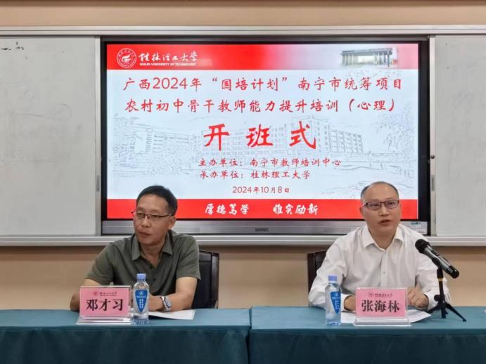 10月8日下午,广西2024年“国培计划”南宁市统筹项目——农村初中骨干教师能力提升培训班(心理)在浦京集团官网顺利开班。南宁市教师培训中心副主任邓才习、350vip浦京集团官网副院长张海林及来自南宁市的70余位初中心理骨干教师参加了开班式。