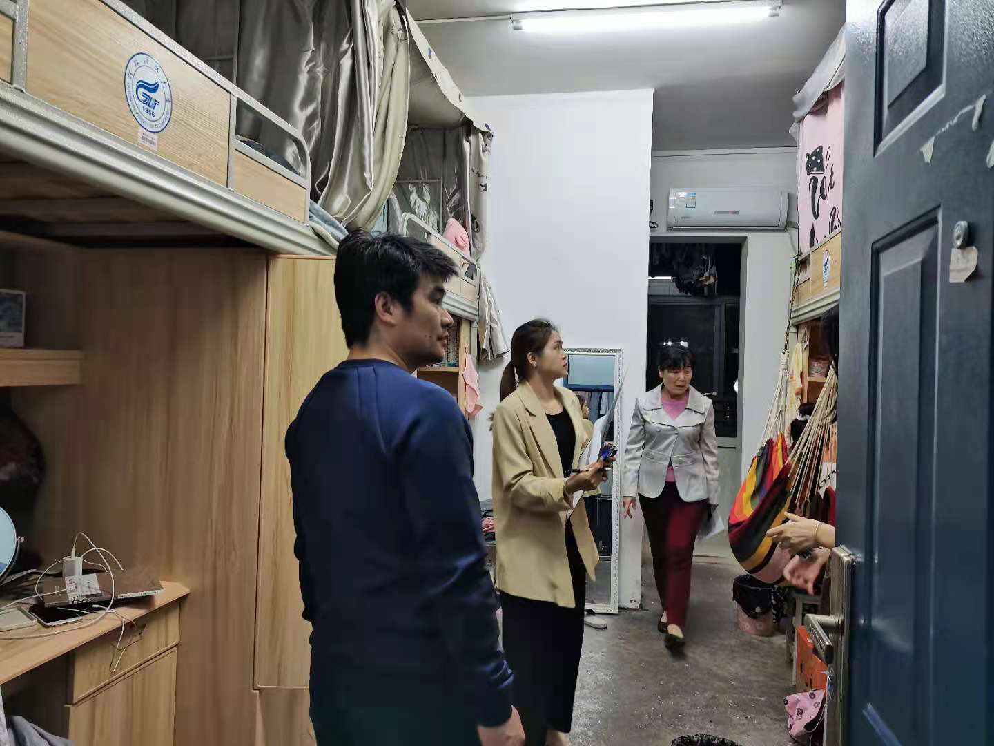 4月29日,针对学生宿舍进行突击检查。此次检查工作由学院办、合作办学项目管理团队成员组成,检查重点是宿舍公共区的消防设施、宿舍内违章存放或使用大功率电器及学生晚归等违纪违规行为。检查小组分区域对每间宿舍排查结果进行详细记录,将问题汇总后限期整改。检查过程中,大多数学生宿舍安全、卫生状况良好,没有发现重大安全隐患。对少数存在脏乱差现象和安全隐患的宿舍,老师们进行了现场教育和安全知识宣传,反复叮嘱同学们要自觉遵守校规校纪,认真履行安全责任,合力营造安全、健康、舒适的学习生活环境。