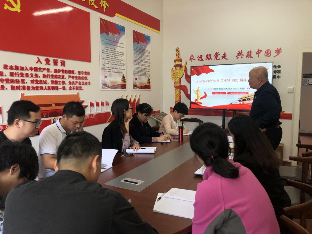 会上,李芳同志作了《坚定“新四史”信念 传承“新四史”精神》的主题分享,他围绕学习“新四史”的历史和现实意义、党的教育方针、落实立德树人根本任务等内容进行学习交流。同时,全体党员共同朗读了党的教育方针,针对分享主题谈了各自体会。分享交流会结束时,还专门布置了课外学习作业,要求小组全体党员利用工作之余自行观看中共中央党校(国家行政学院)副校长(副院长)谢春涛教授《中国共产党为什么“能”》党史专题讲座,并撰写心得体会。