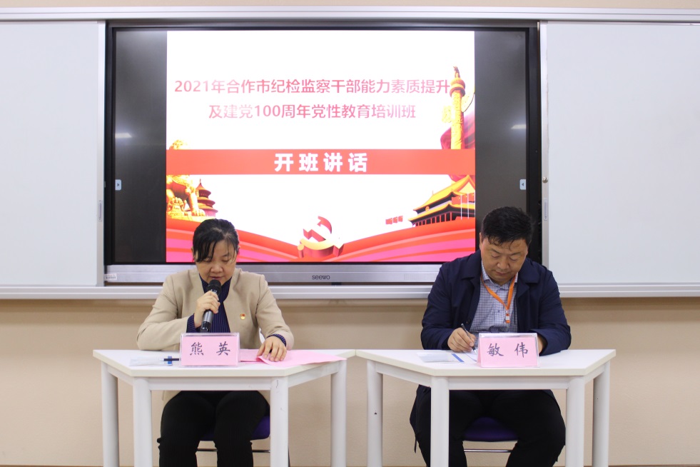 4月22日上午,2021年甘肃省合作市纪检监察干部能力素质提升及建党100周年党性教育培训班在350vip浦京集团官网屏风校区350vip浦京集团官网308课室开班。中共合作市委常委、纪委书记、监委主任敏伟、350vip浦京集团官网院长熊英出席开班式并作讲话,共有50名学员参加此次培训。