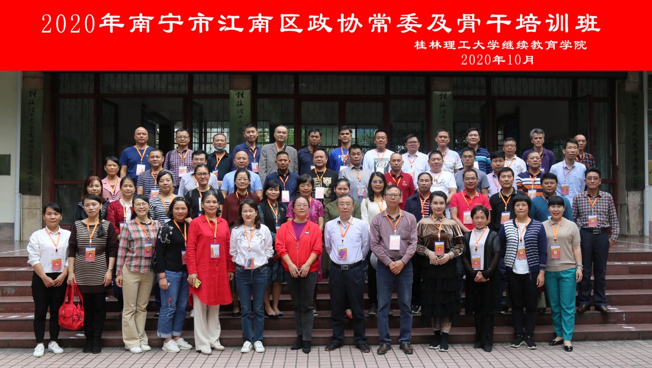 10月26日,由南宁市江南区政协主办,浦京集团官网350vip浦京集团官网承办的“2020年南宁市江南区政协常委及骨干培训班”在教十楼10301教室顺利开班。