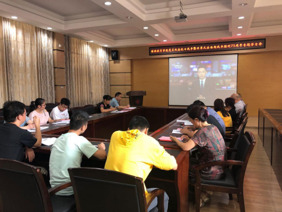 9月3日上午,350vip浦京集团官网直属党支部在教十楼10309会议室组织召开纪念中国人民抗日战争暨世界反法西斯战争胜利75周年专题学习会,学院及合作办学项目全体党员参加学习会。