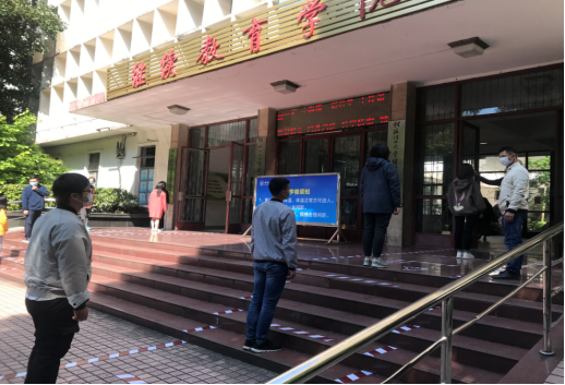 演练场景1:在教十楼门口设置体温检测点,对进入教学楼的师生进行体温检测、佩戴口罩情况检查。针对不同情况的师生,由工作人员进行分类处置:对无异常的,引导其保持合理间距,按指定通道有序进入教学楼;对未佩戴口罩的,对其进行劝导教育并按程序发放口罩;对有发热症状的,引领其至专门区域进行隔离观察。