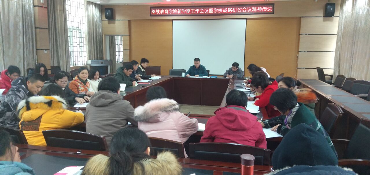 2019年2月28日上午,学院在10309召开2019年新学期工作会暨学校战略研讨会议精神传达,会议由崔建明院长主持,学院全体员工参加。