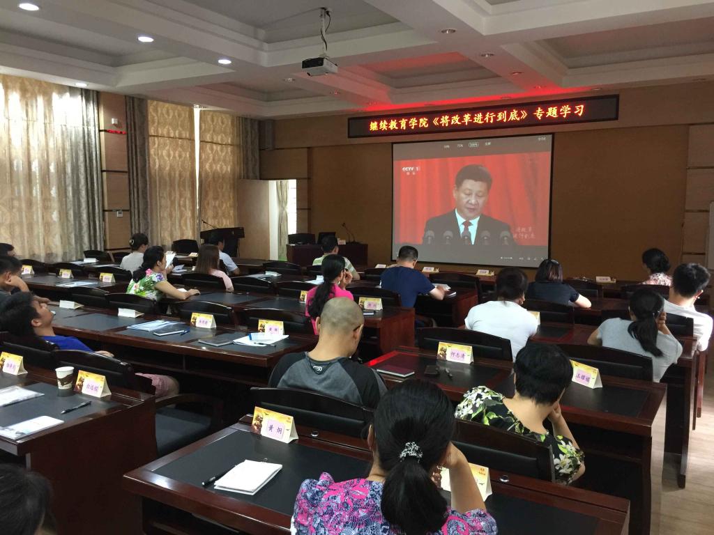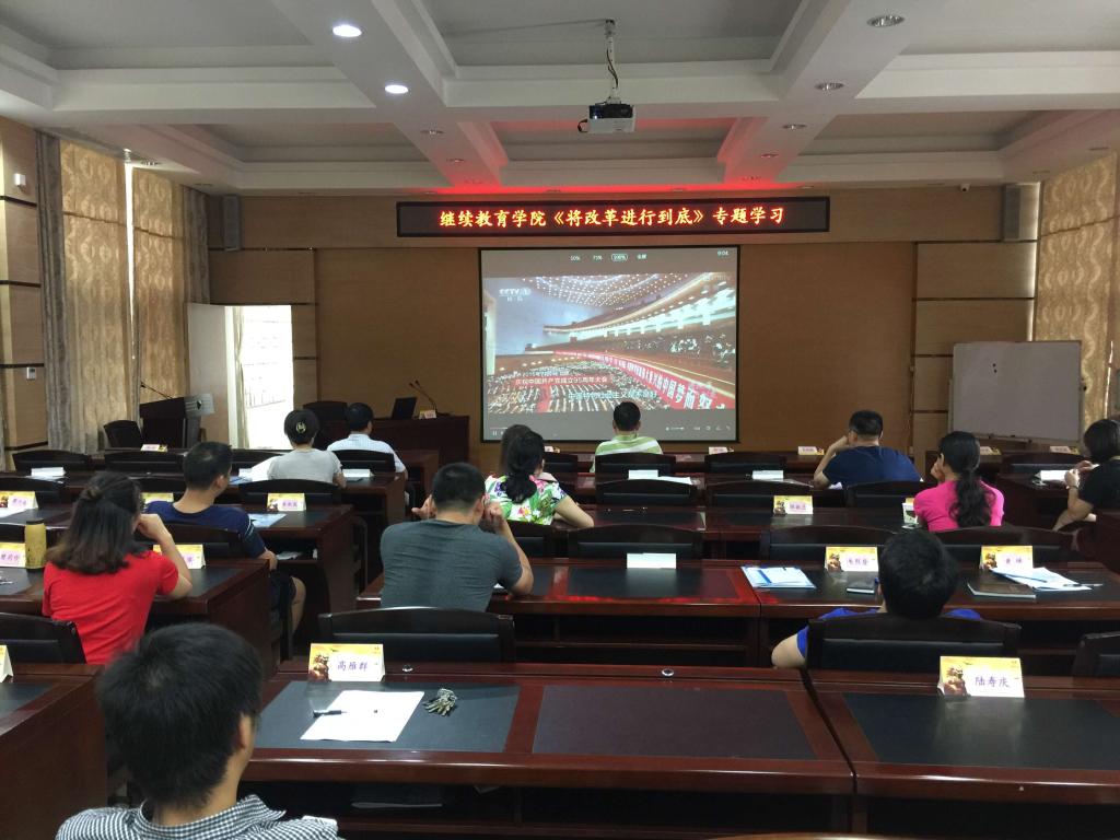 7月20日上午,350vip浦京集团官网组织全体教职工观看并开展专题学习讨论,专题片不仅大量体现习近平总书记思考改革、部署改革、亲力亲为推动改革的珍贵画面,还有全面深化改革决策亲历者的生动讲述,从国内和国际视野出发,透过历史、当代和未来的时空坐标,紧紧围绕习近平总书记治国理政新理念新思想新战略,讲述了全面深化改革重大战略部署的决策过程,描述了习近平总书记改革理念的形成轨迹,系统阐释了全面深化改革“为什么改”、“往哪儿改”、“为谁改”、“怎么改”、“如何改到位”等重大理论问题,勾勒了全面深化改革具有“四梁八柱”性质的主要领域改革框架,概括总结了全面深化改革的主要特征,生动讲述了党的十八大以来伟大改革进程给人民群众带来的获得感。