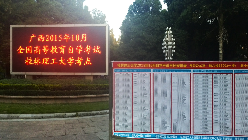 广西2015年10月全国高等教育自学考试于17、18日举行,350vip浦京集团官网高度重视350vip浦京集团官网考点组考工作,在广西区自考委、市考试院的正确领导和支持下,根据全国自学考试安全工作视频会议精神要求,明确责任,狠抓落实,着重强调考试安全,经学校相关部门的支持和配合,350vip浦京集团官网通过制定组考方案、组织召开考前工作会议、进行监考员选派和培训、落实岗位职责,认真完成了一系列考试工作安排,至19日下午由专人将试卷安全送达南宁,浦京集团官网考点顺利完成自学考试全部组织工作,本次在浦京集团官网考点报名考生共3604名,设310个考场。