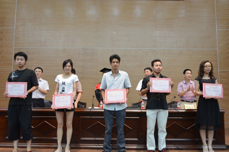 曹文献院长首先致毕业典礼开幕词。在欢快的背景音乐声中,获得学士学位和荣誉证书的各位优秀毕业生分别上台领取证书。