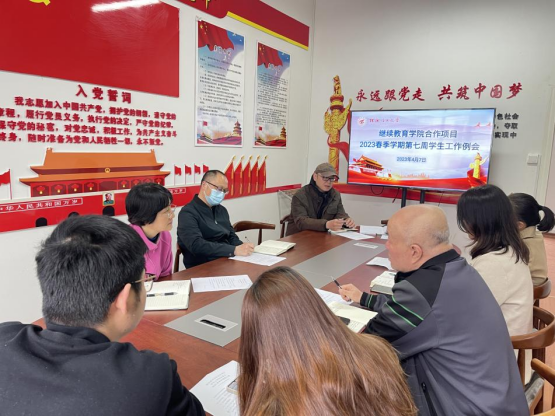 会议上,两个合作办学项目围绕学生思想政治、安全稳定、课程建设、学生课外活动、学生纪律等工作进行了汇报。学院办公室老师传达了学校近期相关文件精神,对学生日常管理工作中存在的问题和应对措施给出了意见建议。