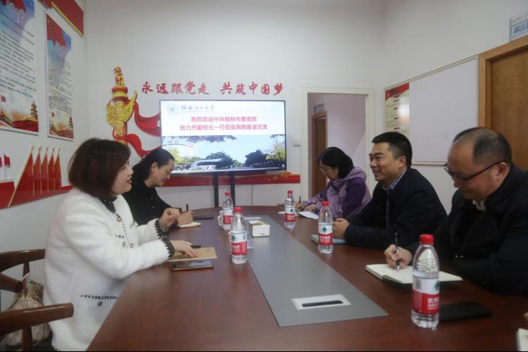 12月4日,桂林市委党校张力丹副校长一行两人到浦京集团官网调研交流。学院党支部书记、院长周国桥在教十楼206会议室热情接待了来访客人,相关科室负责人参加座谈。