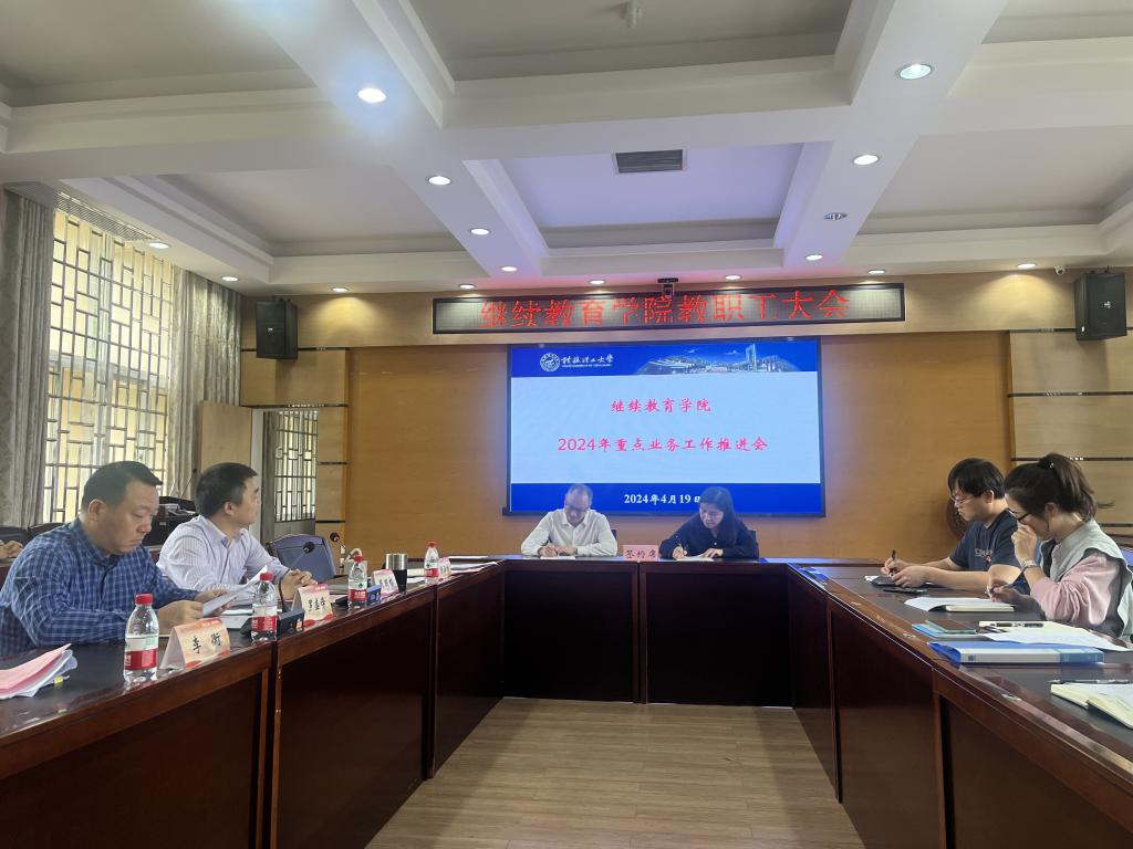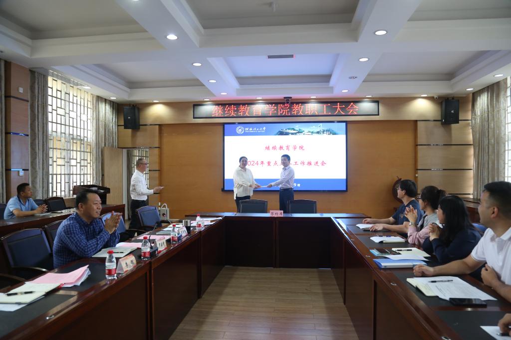 各科室负责人围绕重点业务推进情况及下一步打算进行工作汇报。分管副院长就落实2024年重点业务目标进行工作布置。张海林副院长围绕办公室及培训中心各项工作提出了细致详尽的工作思考。李衡副院长从提升学历继续教育教学质量、保障招生规模、安全考试等三个方面安排布置成高中心及自考办工作。