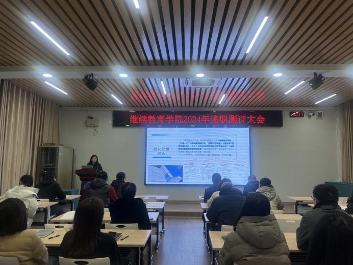 1月9日,学院组织召开2024年度教职工述职评议大会。学院全体干部职工分别通过现场汇报和书面述职两种方式参加述职评议。副院长李衡主持会议。