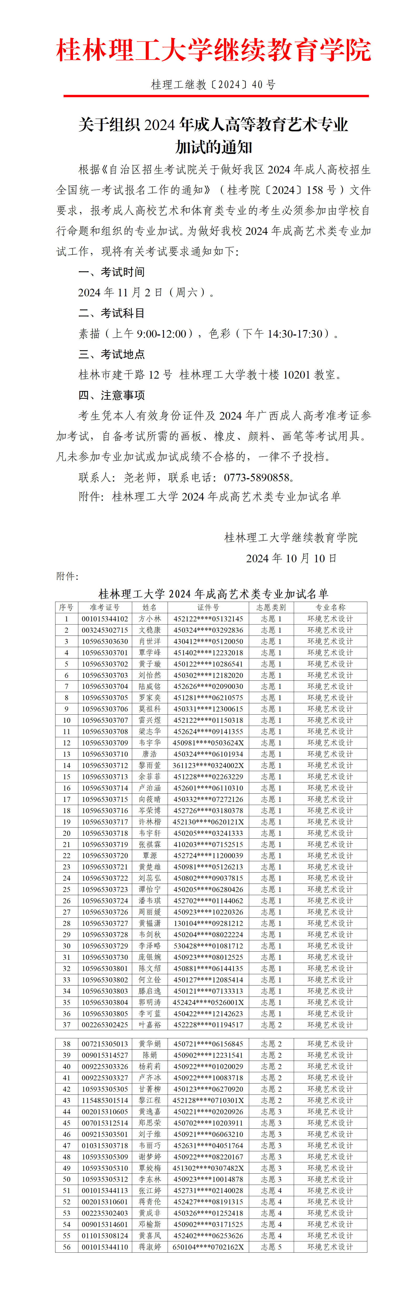 关于组织2024年成人高等教育艺术专业加试的通知 发布者:成高管理中心 2024-10-11 已阅人次 (一审:尧田坤 二审:林文钊 三审:李衡) 上一条:关于做好2024年下半年高等教育自学考试学士学位申报的通知 下一条:350vip浦京集团官网关于对超过最长学习年限的成人高等教育学生拟作退学处理的公示 关注我们