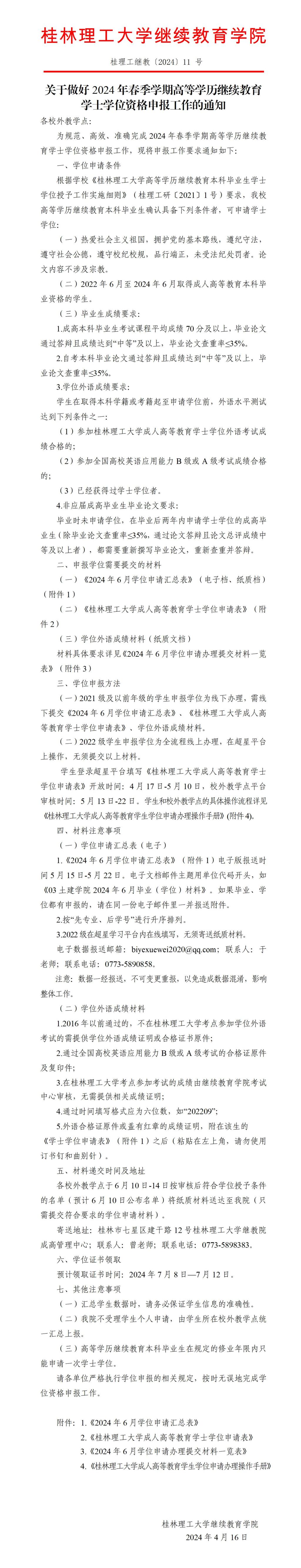 关于做好2024年春季学期高等学历继续教育学士学位资格申报工作的通知 发布者:成高管理中心 2024-04-16 已阅人次 (一审:于德新 二审:林文钊 三审:李衡) 上一条:关于印发修订后的《350vip浦京集团官网高等学历继续教育本科毕业生学士学位授予工作实施细则》的通知 下一条:关于做好2024年春季学期成人高等教育毕业生资格审核及毕业证办理工作的通知 关注我们